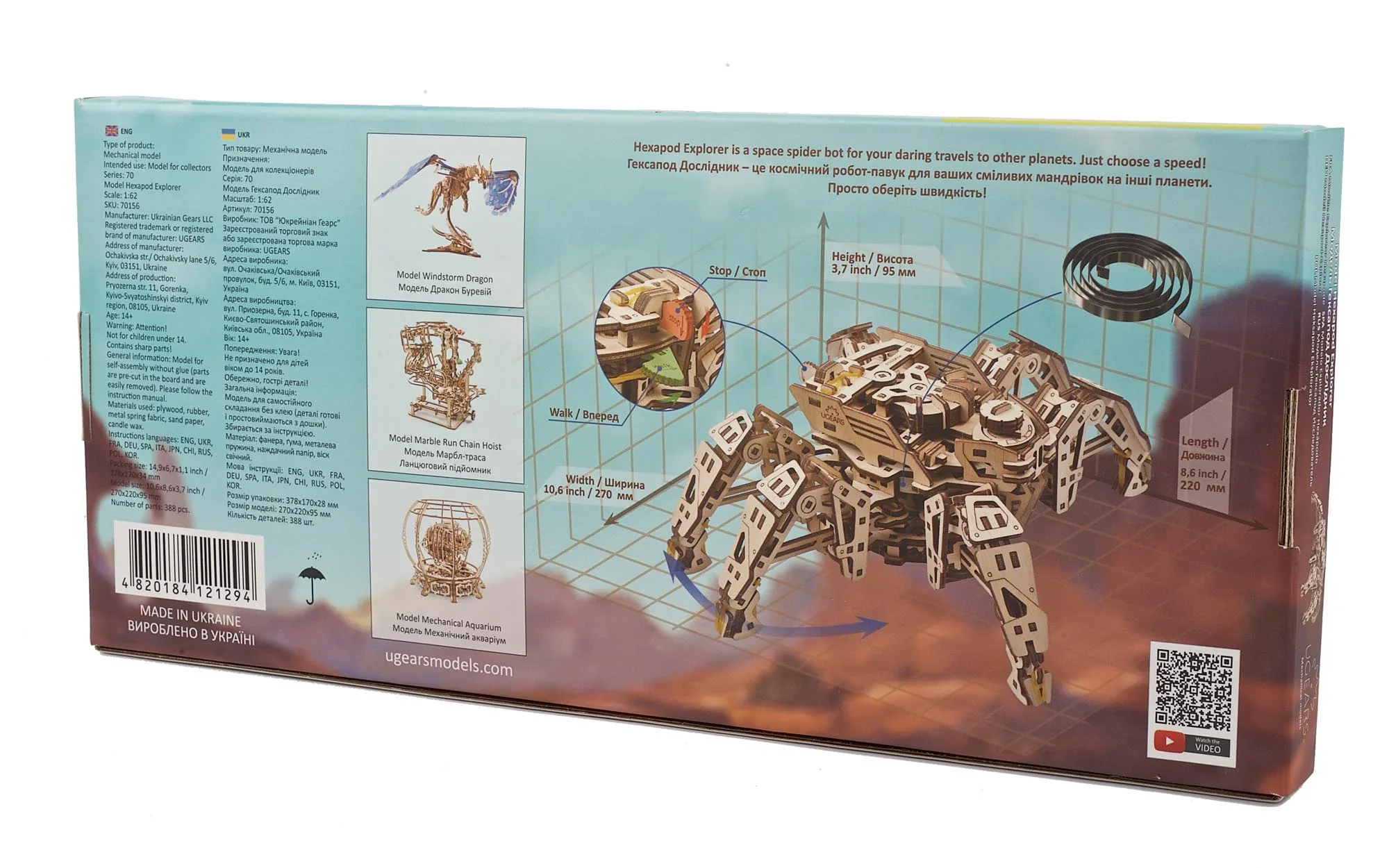This DIY Hexapod Explorer takes its place as champion walker among Ugears' amazing family of mechanoids, automatons, 3D puzzles, and wooden mechanical marvels. We've created a purely mechanical, wooden walking robot, without electronic components. At Ugears we believe design should be elegant, in every sense of the word—simple, smart, and beautiful to look at.