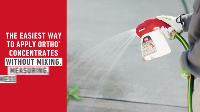 The Ortho Dial N Spray Hose End Sprayer makes it easy to apply Ortho liquid weed killers, insect killers, fungicides, and fertilizers dispensing approximately 2 gallons of water per minute. There's no mixing, measuring, or mess. Simply choose the desired setting and spray pattern, pour the product into the sprayer jar, and connect the hose. Dial N Spray has 14 built-in dilution settings to automatically mix the product with water. There are also three spray patterns so you can deliver the product in an efficient and effective way. Use the Broadcast pattern for large, open areas; the Jet spray for high, hard-to-reach places up to 25 feet or tough rinse jobs; and the Shower setting to provide a gentle shower that's perfect for flowers and gentle vegetation. While using the Ortho Dial N Spray Hose End Sprayer, the extended-grip handle and ergonomically designed trigger makes the grip comfortable while the Dial N Spray anti-backflow device prevents product from going back into water systems.